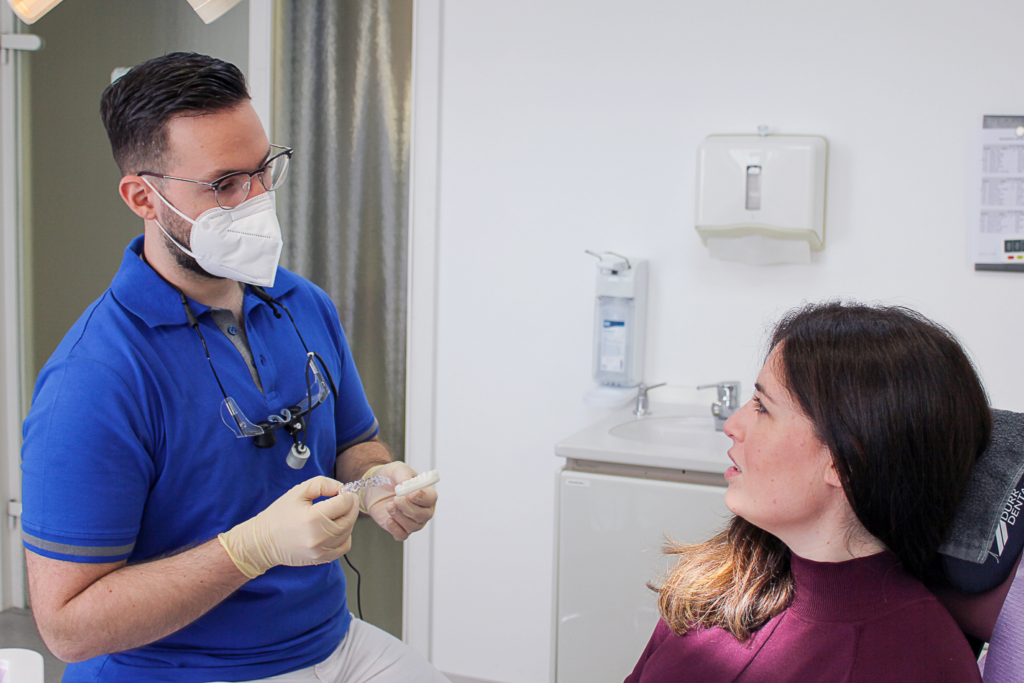 Wir können Schnarchern mit einer speziellen Aufbiss-Schiene helfen. Diese individuell angefertigte, herausnehmbare Kunststoffschiene wird während des Schlafens getragen. Sie hält den Unterkiefer in der richtigen Lage. So bleiben die Atemwege offen. Viele Patienten sind dadurch sofort vom Schnarchen befreit. Die Schiene kann selbst eingestellt werden und ist angenehm zu tragen.